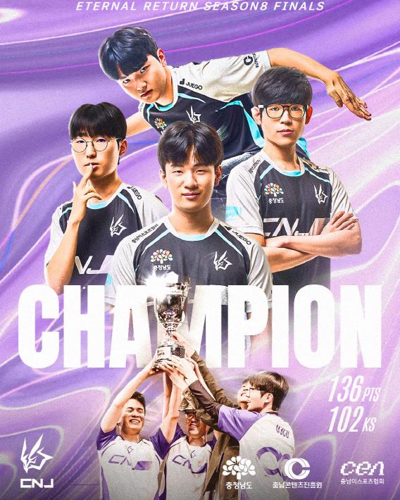 | 충남콘텐츠진흥원, 충남 대표 게임단 CNJ 이스포츠 게임단 지원 ‘이터널 리턴 마스터즈 시즌8’ 우승으로 이어져 |