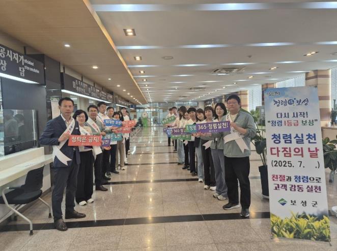 | 보성군, 행안부 ‘국민행복민원실’ 3회 연속 선정_보성군청 민원실에서 직원들이 친절민원 실천을 다짐하고 있다 |