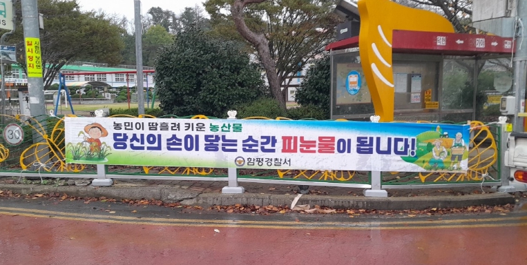 또한 범죄 발생·112신고 이력 등 치안 데이터 분석을 통해 취약 요소 선정·공유하여 취약 장소에 대해 이동형 CCTV 설치하고, 농산물 보관창고 등급관리제 정비 및 사전 점검하는 등 예방 활동을 추진(10. 15 ~ 11. 30, 7주간)하고 있으며 지역민의 지속적인 관심과 농산물 도난 예방을 위해 올해 농산물 절도발생 지역 등 6개소에 플래카드를 게첩(揭帖)했다.