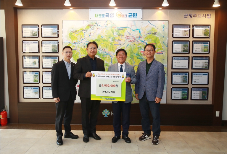 | ㈜건우기업, 곡성군 교육사업 지원하기 위해 곡성군미래교육재단에 5백만 원 기탁 |