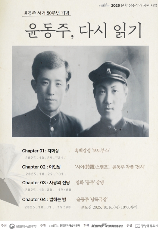 김현숙 도서관과장은 “윤동주 서거 80주년을 맞아 시민이 직접 참여하고 체험할 수 있는 행사를 기획했다”며 “시인의 언어와 정신을 오늘의 감성으로 다시 만나는 뜻깊은 시간이 되길 기대한다. 많은 시민의 관심과 참여를 부탁드린다”고 말했다.