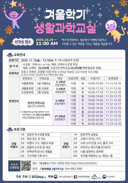 생활과학교실은 오는 29일 오전 11시부터 세종시에 거주하는 초등학교 2~6학년 학생이라면 누구나 신청할 수 있다.