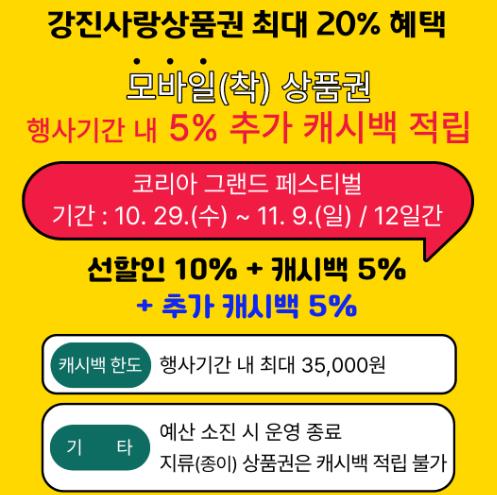 | 모바일(착) 강진사랑상품권, 5% 추가 캐시백 지원 |