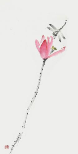 | 곡성 갤러리 107, 이명희 ‘먹꽃’ 수묵화 개인전 개최(연과 잠자리2 41×305cm 한지에 수묵담채) |