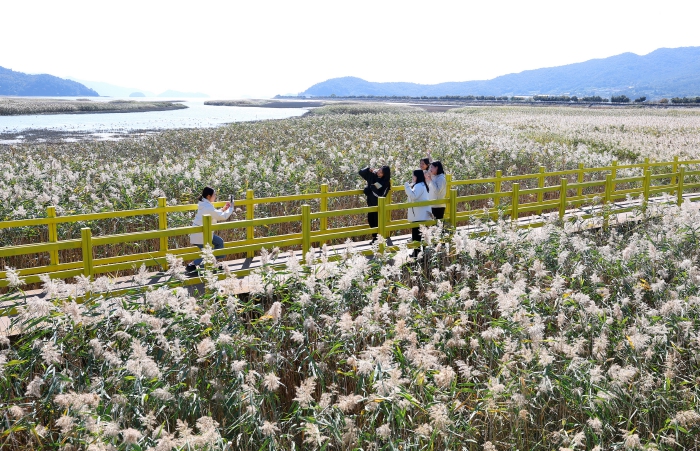 | 제10회 강진만 춤추는 갈대축제가 열린 가운데 강진만 갈대밭을 찾은 관광객들이 가을의 정취를 맘껏 느끼고 있다. |