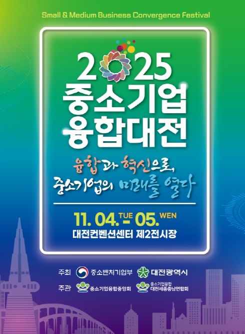 대전시는 중소벤처기업부 와 공동으로 11월 4일부터 5일까지 대전컨벤션센터(DCC)에서‘2025 중소기업융합대전’을 개최한다.