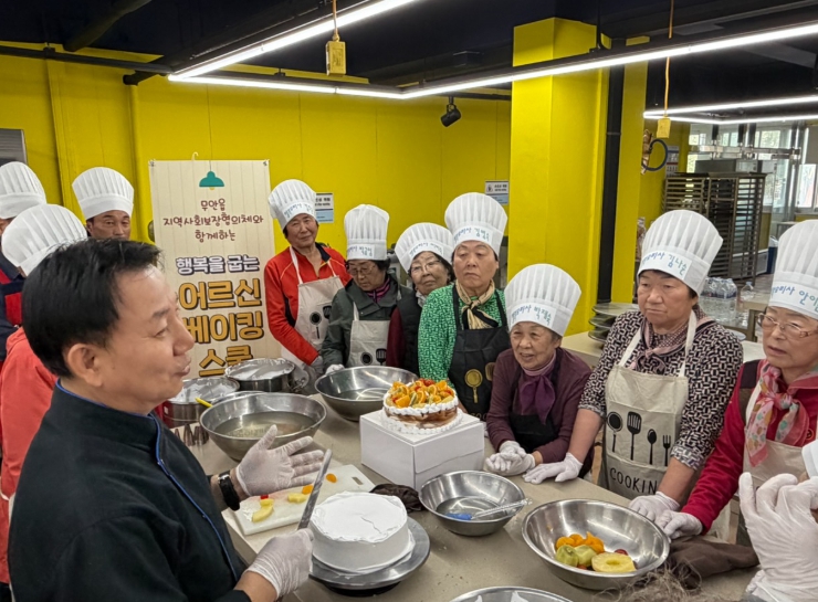 이날 행사는 어르신들이 직접 케이크를 만들고 꾸미는 과정을 통해 새로운 경험을 쌓고 대학생과의 세대 소통을 통한 사회적 관계 회복을 목표로 마련됐으며, 초당대학교 교수진과 학생들이 재능기부 형태로 참여해 제과 제빵 기본 실습부터 간단한 케이크 만들기 현장 지도를 진행했다.
