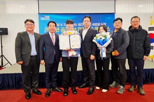 | 강진군이 ’2025년 공간정보 및 도로명주소 연구과제 경진대회‘에서 최우수상을 수상하고 기념촬영을 하고 있다. |