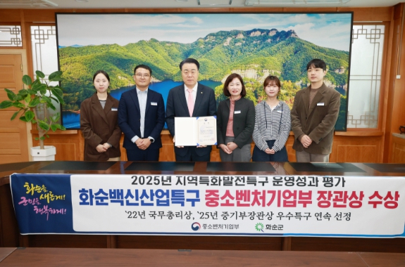 | 화순군, ‘2025년 우수특구’ 중소벤처기업부장관상 수상 기념사진 |