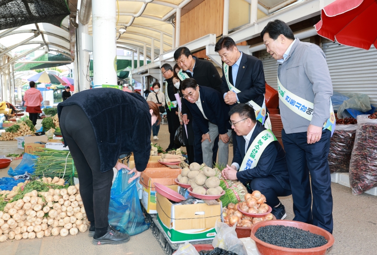 이날 캠페인에는 김문수 위원장을 비롯한 농수산위원회 위원들과 의회사무처 직원들이 참여해 전통시장 상인들과 소통하며 지역 농수산물과 특산품을 구입했다.