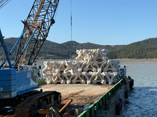| 산란·서식장으로 이동하고 있는 인공어초 |