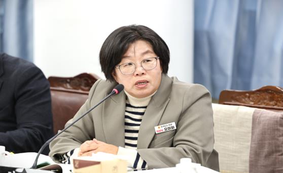 | 전라남도의회 제395회 제2차 정례회 2026년도 인구청년이민국 소관 예산안 심사(19일)에서 오미화 의원이 집행부를 향해 질의하고 있다. |