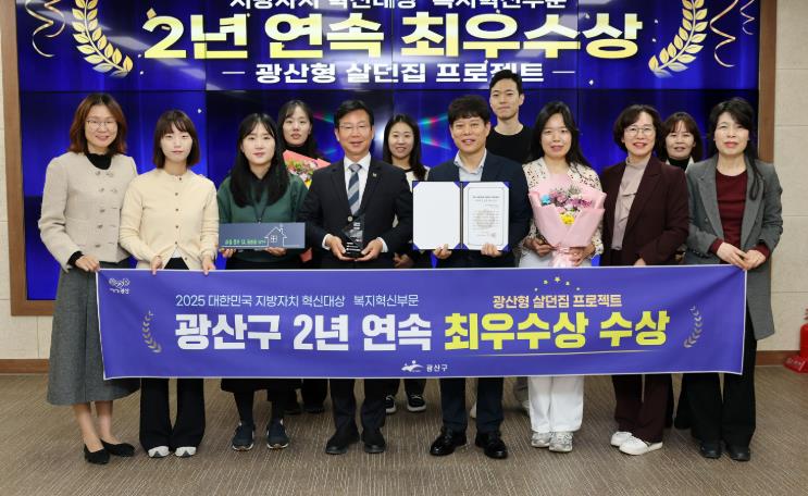 | 광산구가 ‘2025 대한민국 지방자치 혁신대상’에서 2년 연속 최우수상을 받았다. 이 상으로 광산구 ‘살던집 프로젝트’는 복지 혁신 평가 2관왕을 기록하게 됐다. |