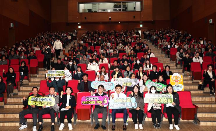 | 보성군민은 오늘부터 건강하고 행복한 저속노화 시작_‘저속노화 오늘부터 시작’이라는 퍼포먼스를 하고 있다 |