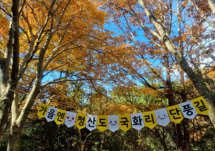 청산도 국화리 단풍길은 슬로길 9코스로 상수원 입구에서부터 지리 청송 해변까지 약 3.2km이며, 도보로 약 1시간 정도 소요된다.