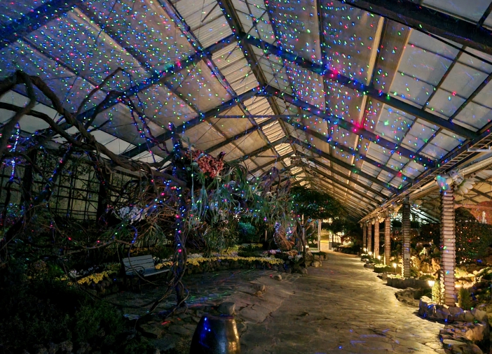 길을 따라 빛으로 물든 나무와 꽃들 사이에는 작은 별처럼 촘촘한 조명이 반짝이며, 천장에 반사되는 불빛은 마치 은하수를 따라 걷는 듯한 신비로운 감각을 만들어낸다. 여기에 은은하게 흐르는 배경음악까지 어우러져 한층 더 몽환적인 분위기를 자아낸다.