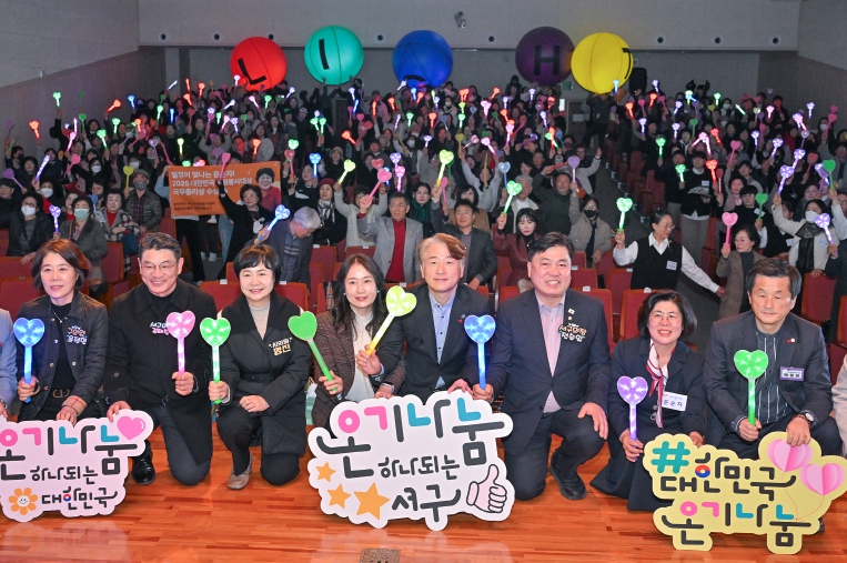 이날 대회에는 김이강 서구청장을 비롯해 지역 우수 자원봉사자 등 400여 명이 참석한 가운데 영상을 통한 활동 공유, ‘빛나라 서구’ 퍼포먼스, 유공자 표창 등이 진행됐다. 특히 ▲문순자 광천동 자원봉사캠프장이 국무총리 표창을 ▲서광순 자원봉사 성장학교 교육강사가 행정안전부 장관 표창을 받아 주목을 받았다.