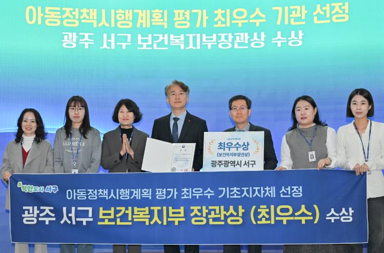 서구는 보건복지부가 주관한 ‘아동정책시행 계획 추진실적 평가’에서 전국 최우수 지자체로 선정돼 보건복지부 장관상을 수상했다.