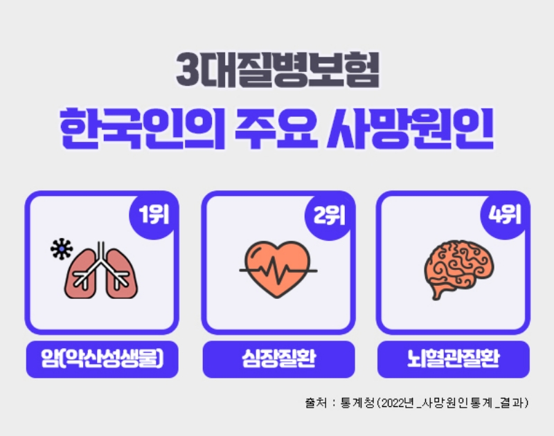 병원 실치료비를 보장해 주는 실손의료비 보험은 가장 기본적인 상품이긴 하지만 여러 건 가입해도 중복보장이 안되는 반면, 3대질병진단비 보험은 중복보장이 가능하므로 중복가입을 통해 보장금액을 높인다면 그만큼 혜택이 늘어날 수 있다. 특히 이러한 중대질병은 경제활동을 할 수 없거나 높은 간병비 등으로 인해 경제적으로 많은 부담이 될 수 있으므로 진단비보험을 여러 개 준비해두는 것도 금전적인 문제를 해결할 수 있는 하나의 방법이 될 수 있다.