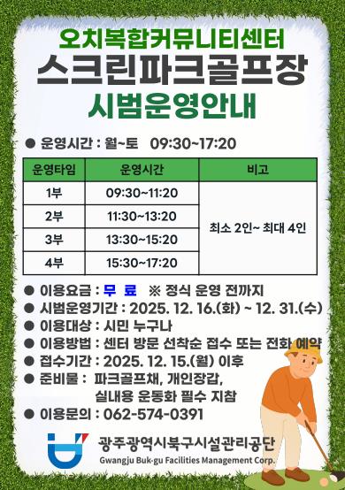 | 북구시설관리공단 오치복합커뮤니티센터, 실내스크린파크골프장 개장 |