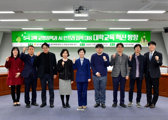 명진 광주광역시의원은 18일 시의회 예산결산위원회 회의실에서 ‘5극 3특 균형정책 대응 대학교육 혁신방향’을 주제로 토론회를 열었다.