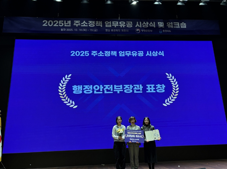 | 여수시는 행정안전부가 주관하는 ‘2025년 주소정책 업무 유공 평가’에서 우수기관에 선정돼 행정안전부 장관 표창을 수상했다. |