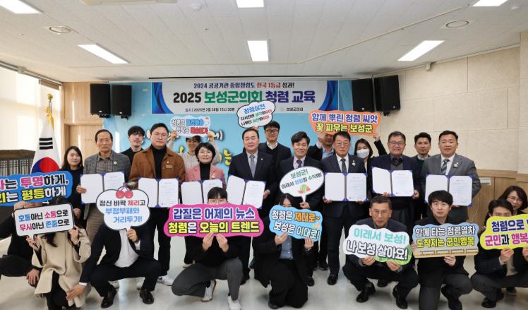 김경열 의장은 “청렴은 우리가 지켜야 할 기본적인 가치로, 이를 위해 더욱 투명하고 신뢰받는 지방의회를 만들어 가겠다”라며, “앞으로도 청렴한 의회 운영과 투명한 행정을 통해 군민들에게 더욱 신뢰받는 보성군의회로 거듭나겠다.”고 밝혔다.