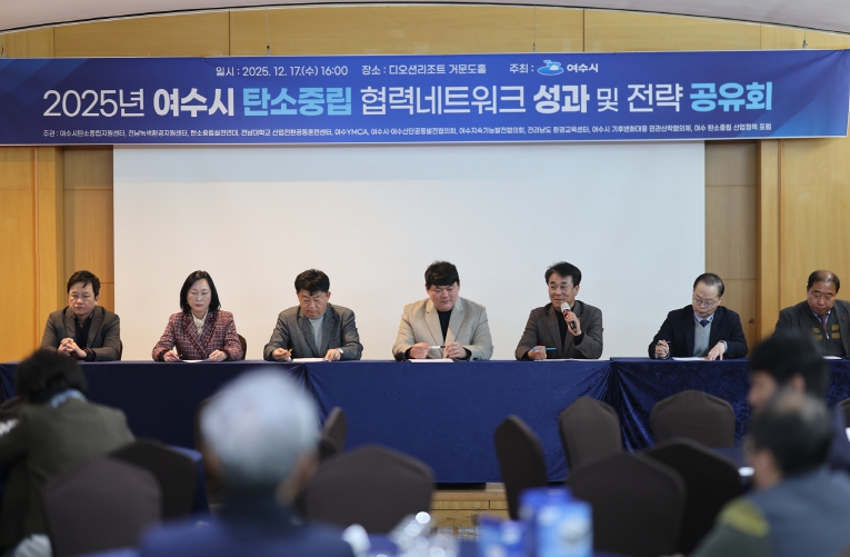 공유회에서는 여수시 탄소중립 협력네트워크 구성원 간 협력 및 공동사업 MOU 체결이 이뤄졌다. 또한 여수시의회 기후변화 대응 탄소중립연구회 소속 의원들에게 감사패 전달과 참여기관별 2025년 사업 추진 현황 및 성과가 공유됐다. 이어 여수시 탄소중립 협력네트워크 활성화 방안을 논의하는 토론도 진행됐다.