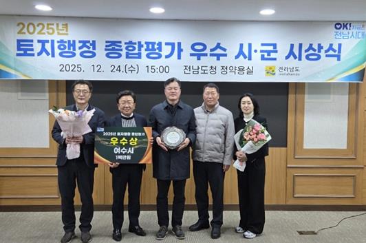 | 여수시가 지난 24일 전라남도 토지행정 종합평가 우수 시·군 시상식에서 우수상을 수상했다. |