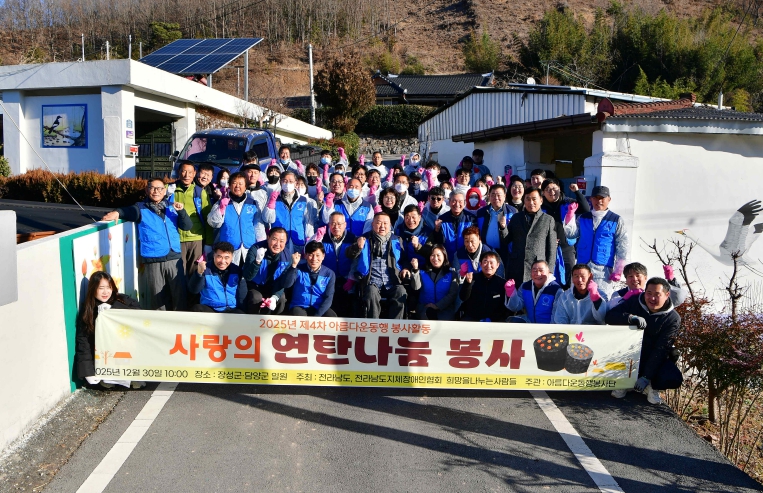 | 30일 오전 (사)전남지체장애인협회 회원 등 100여 명이 연탄 1200장을 장성읍·황룡면 소재 저소득 가구 5곳에 전달했다. |