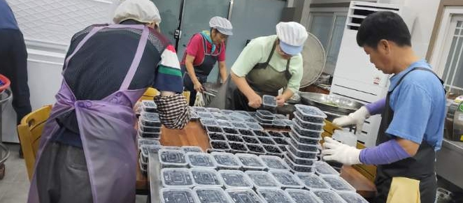 | 화순지역자활센터 도시락사업단에서 아동급식 도시락을 준비하고 있는 모습 |