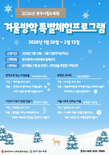 | 광주광역시 시립수목원, 겨울방학 체험프로그램 운영 |