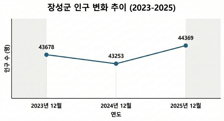 | 지난해 12월 기준 장성군의 인구가 1년 전인 2024년 12월보다 1116명 증가한 것으로 나타났다. |