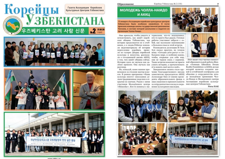 | ‘우즈베키스탄 고려 사람 신문’에 게재된 전남학생공공외교스쿨 활동 모습. |