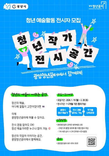| 광양시 광양청년꿈터 내 청년 작가 전시 공간 운영 본격화 - 청년일자리과(포스터) |