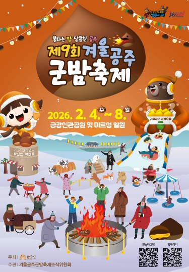 공주시의 대표 특산품인 공주알밤을 활용한 겨울 대표 축제 ‘겨울공주 군밤축제’가 2월 4일부터 8일까지 5일간 ‘불타는 밤, 달콤한 공주’를 주제로 금강신관공원 일원에서 펼쳐진다.