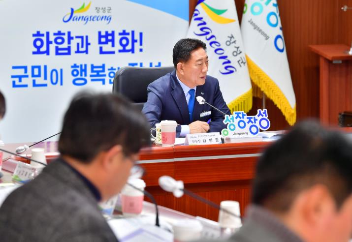 | 26일 ‘인구감소지역대응위원회’ 회의를 주재 중인 김한종 장성군수. |