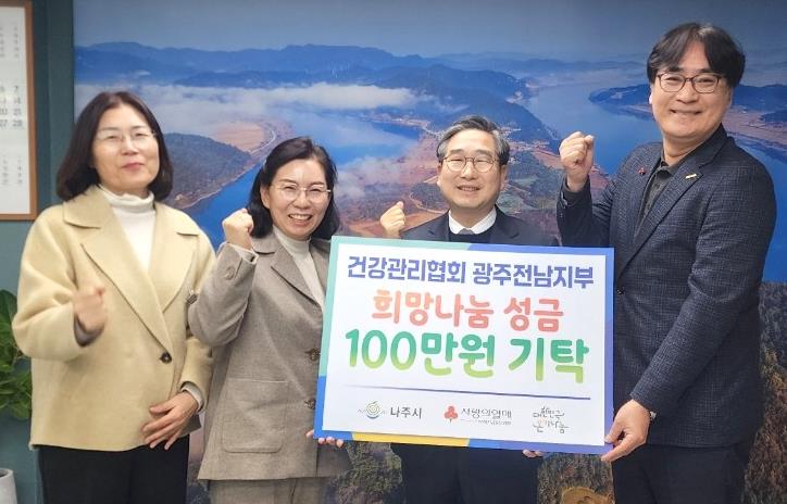 | 건강관리협회 광주전남지부는 나주시에 취약계층을 위한 사랑의 성금 100만 원을 기탁했다. (사진 제공-나주시) |
