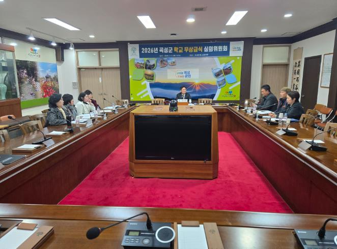 | 지난 3일 곡성군청 소통마루에서 개최된 ‘2026년 곡성군 학교 무상급식 심의위원회’ |