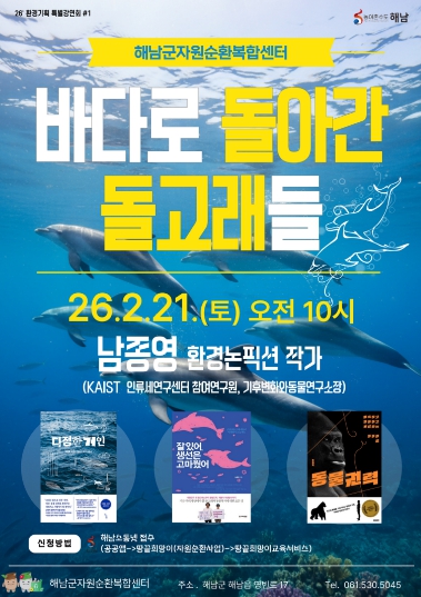이번 강연은 수족관과 전시시설에서 생활하던 돌고래들이 어떤 과정을 거쳐 다시 바다로 돌아가게 됐는지를 실제 사례를 통해 살펴보며, 야생동물 보호와 인간과 자연의 공존에 대해 함께 생각해보는 자리로 마련됐다.