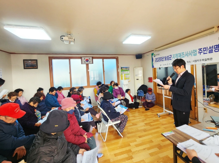 | 보성군, ‘2026년 지적재조사사업 주민설명회’추진_지적재조사사업에 대해 주민들에게 설명하고 있다 |