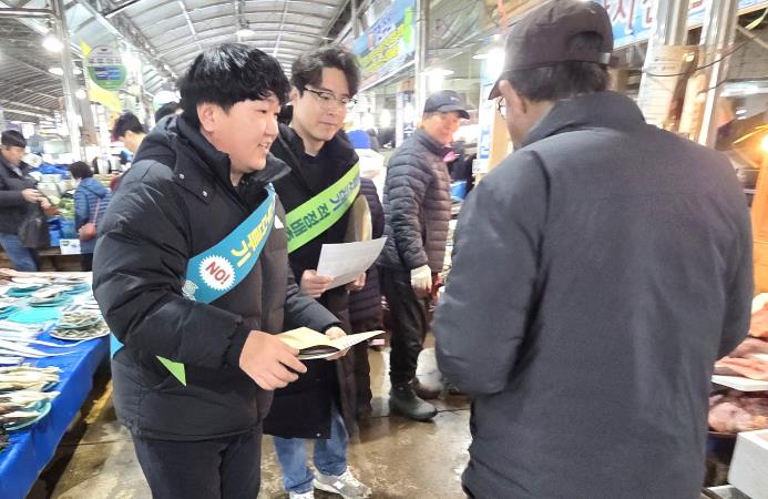 | 나주시는 설 연휴를 앞두고 전통시장을 찾는 시민을 대상으로 9일 목사고을시장에서 쓰레기 무단투기 근절 캠페인을 벌였다(사진 제공-나주시) |