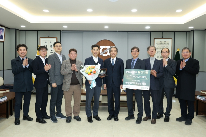 9일 전남대에 따르면 전남대 경영대 무역학과 동문인 김성민 ㈜산하디앤씨 회장이 2월 5일 전남대학교에 인재 양성을 위한 발전기금 2천만 원을 기부했다.
