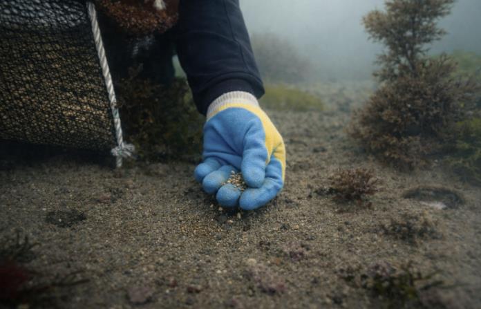 | 잘피 씨앗을 뿌리는 모습 |