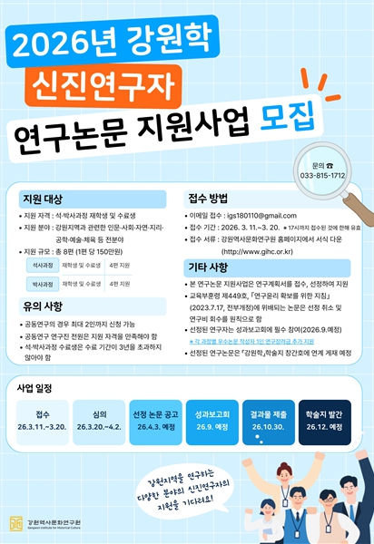 | 2026년 강원학 연구논문 지원사업 홍보 포스터 |