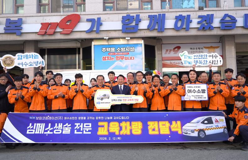| 여수소방서, 보임그룹 한문선 회장 기증 심폐소생술 교육차량 전달식 개최 |