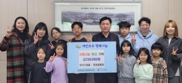 이번 성금은 2025년 영동군 어린이날 큰잔치에서 벼룩시장을 열어 아이들이 소중히 하는 물품을 500~5,000원에 판매하여 모은 소중한 성금이다.