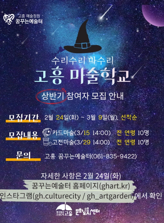 | 융복합 문화예술교육 「고흥 마술학교」 참여자 모집 |