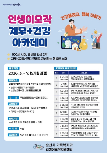 | 순천시 인생이모작지원센터, 재무 ‧ 건강 아카데미 수강생 모집 |