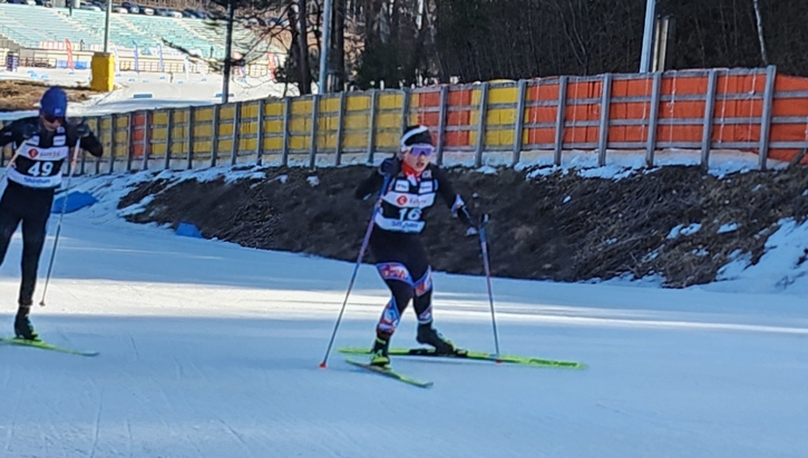 | 스키(크로스컨트리) 오르막을 오르며 힘겹게 질주하는 대회 장면 |